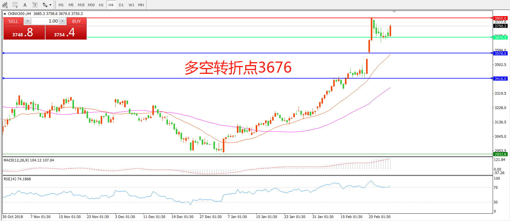 多空转折点:3676.00