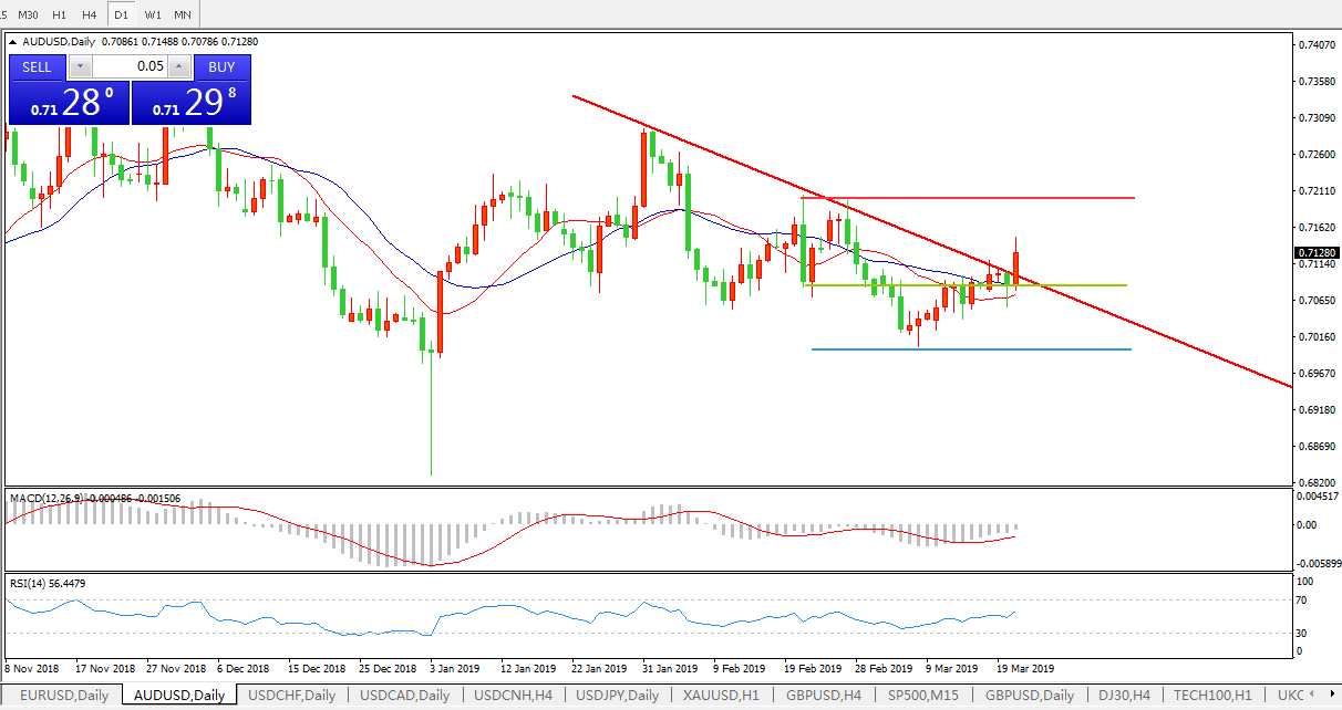 美联储相当鸽派,澳元上破下降趋势线