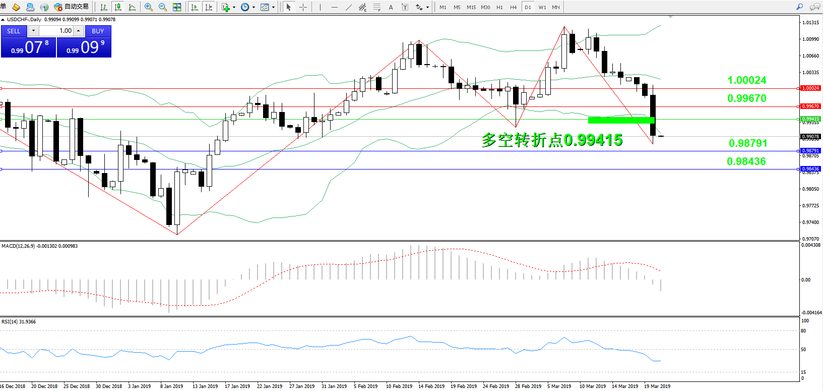 美元兑瑞郎USDCHF ——日K线图显示: