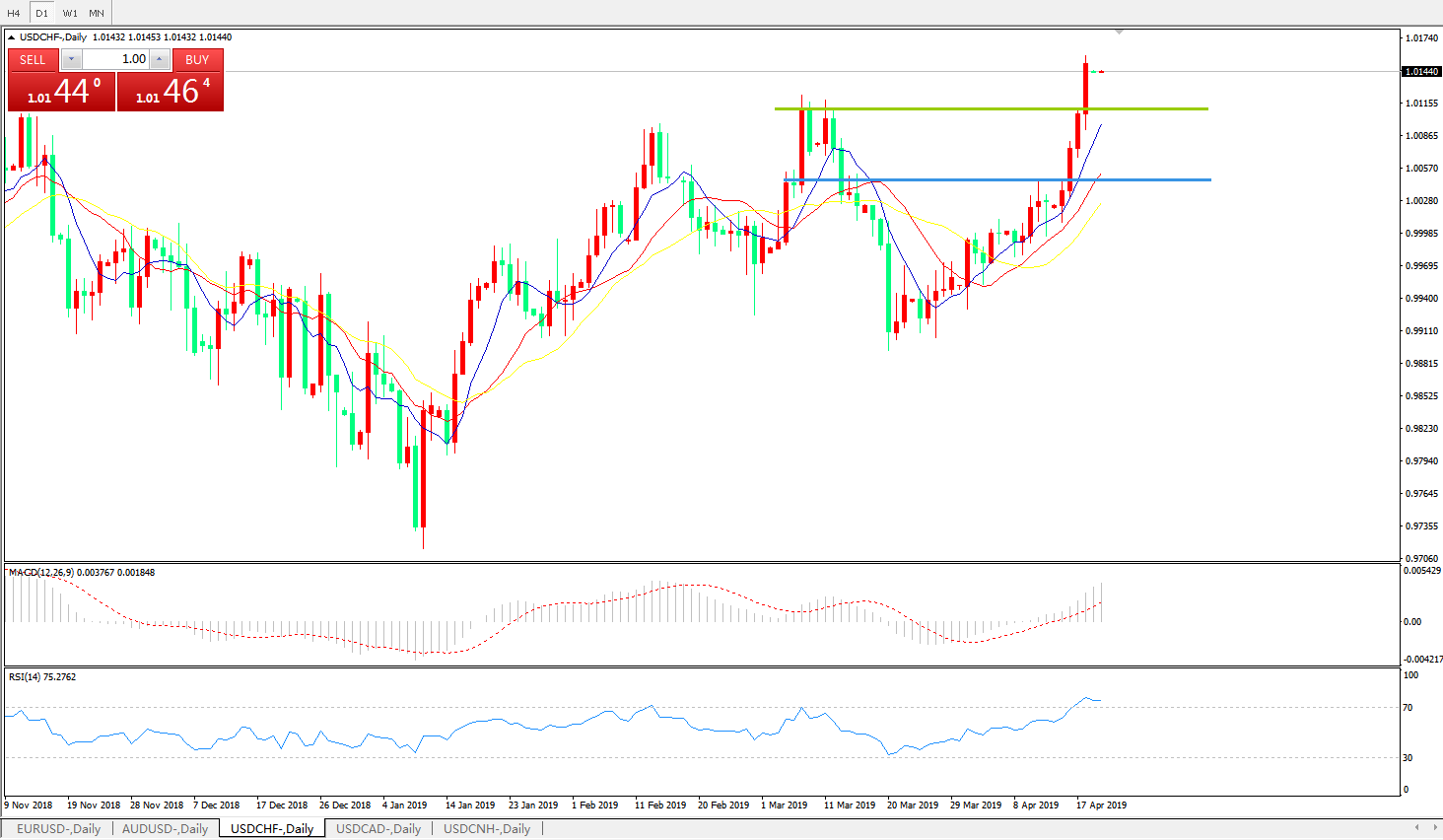 美元兑瑞郎USDCHF 日线图: