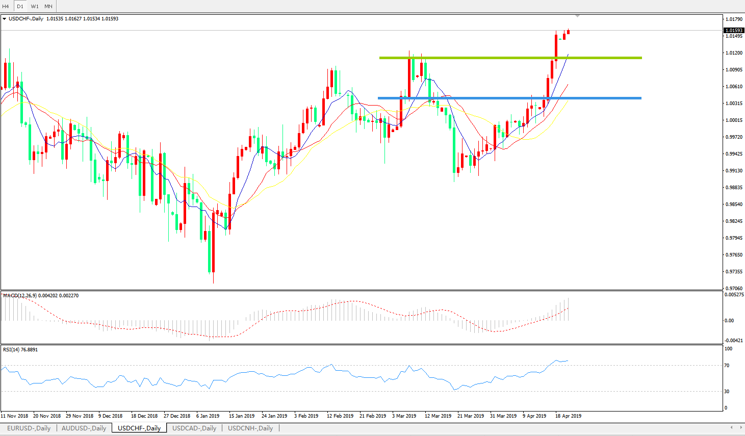 美元兑瑞郎USDCHF 日线图:
