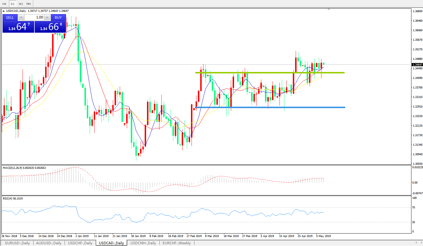 美元兑加元USDCAD    日线