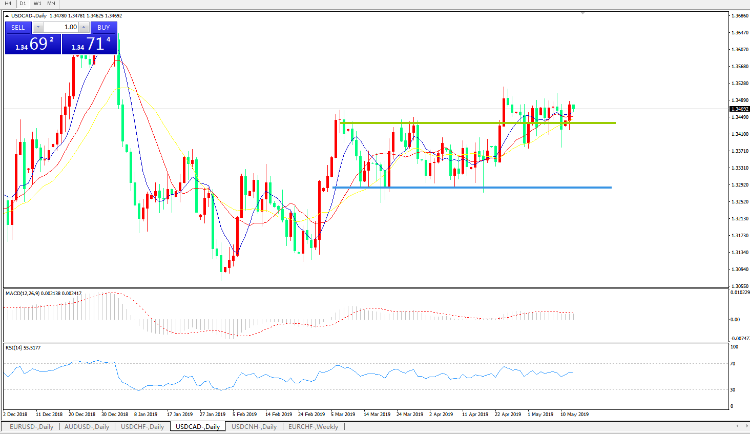 美元兑加元USDCAD 日线图: