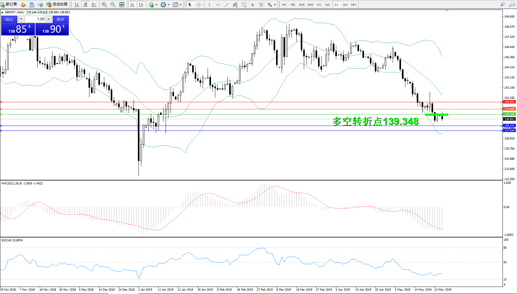交易策略:139.348下方看跌,目标138.151137.634