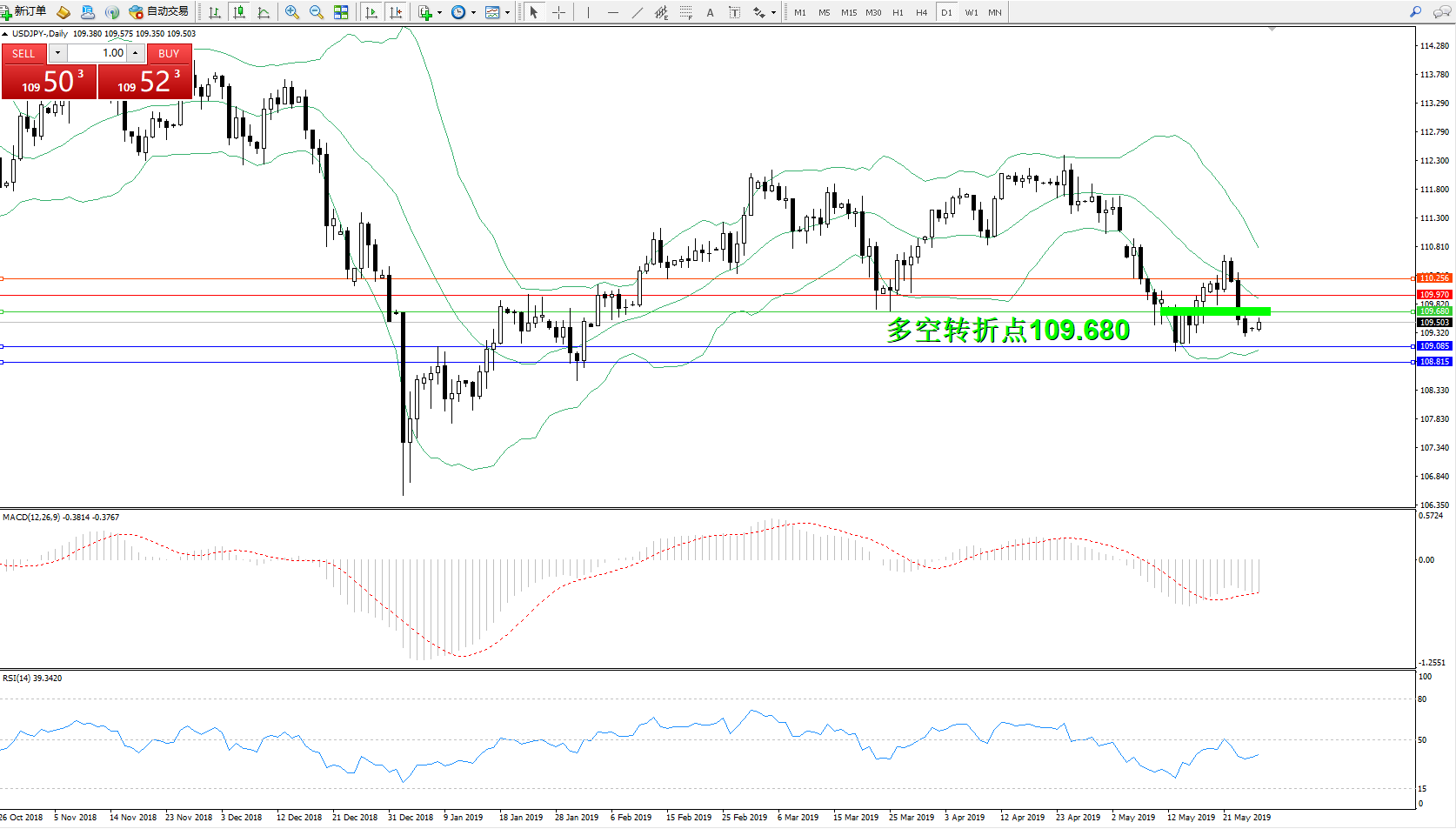 交易策略:109.680下方看跌,目标109.085109.815