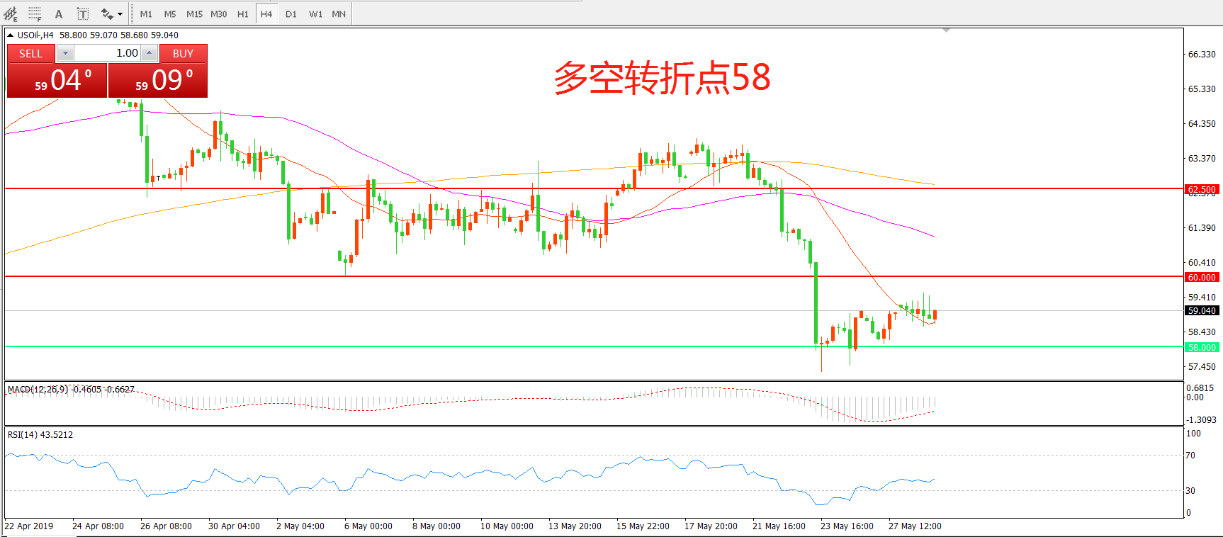 目前市场对中美贸易冲突的担忧情绪和全球经济放缓的担忧施压油价,限制油价上行。而减产行动以及中东紧张局势继续为油价提供支撑支撑。多空交织下,油价窄幅震荡,美国WTI原油周二(5月28日)收报59.01美元/桶。