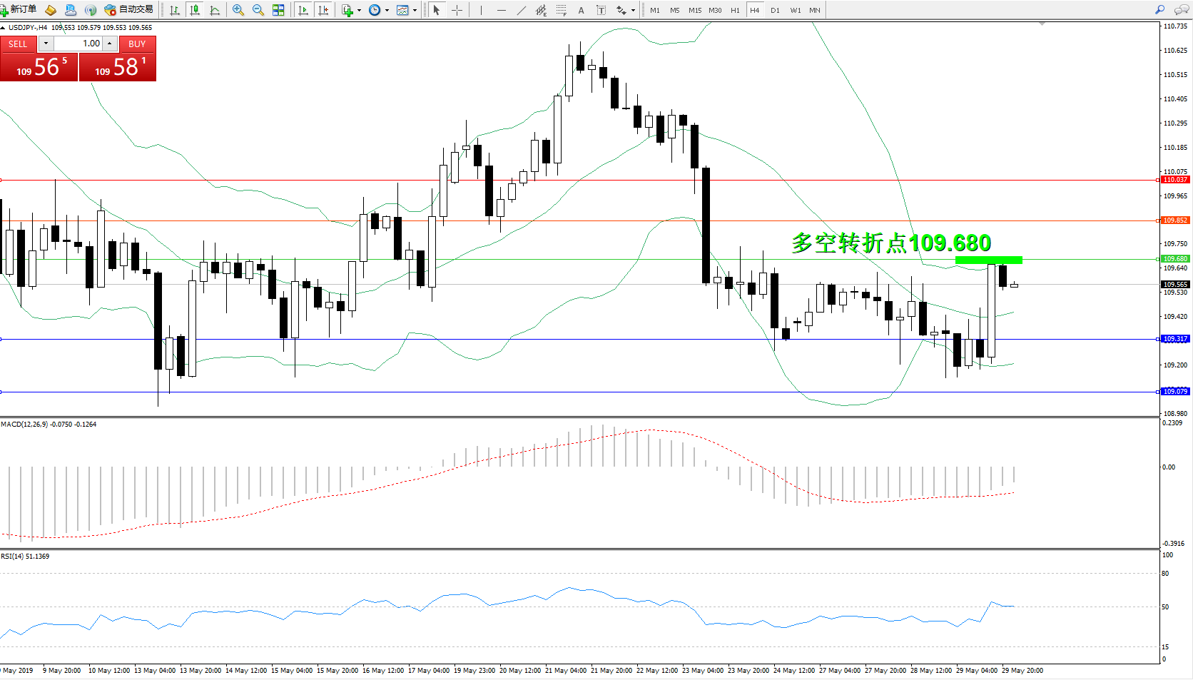 交易策略:109.680下方看跌,目标109.317109.079