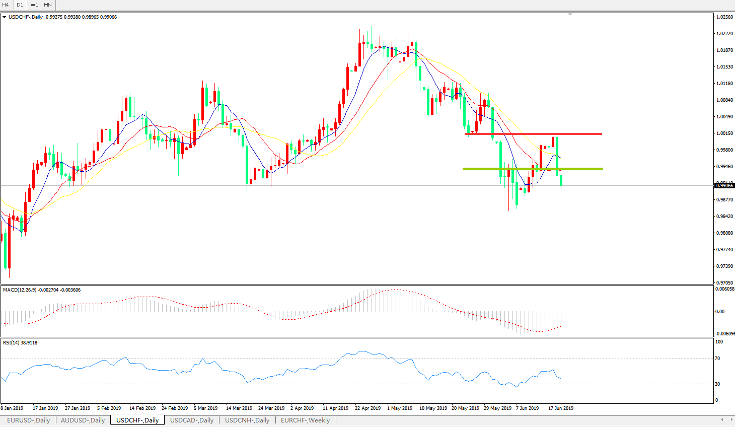 美元兑瑞郎USDCHF 日线图:
