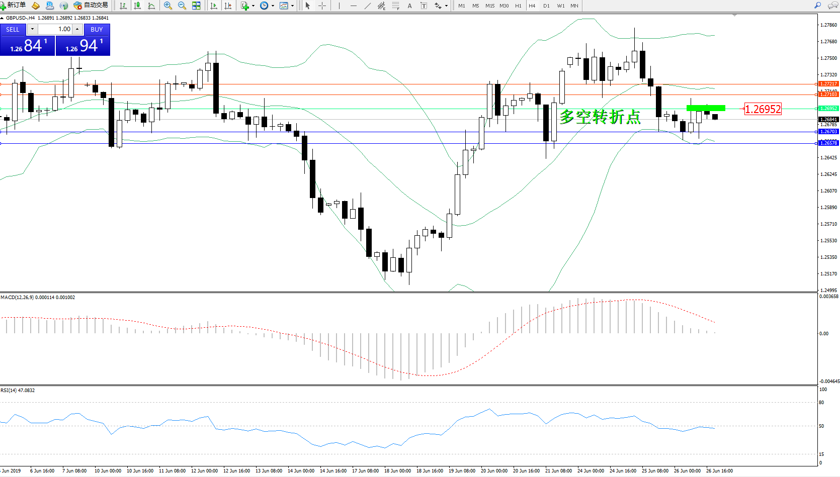 交易策略:1.26952下方看跌,目标1.267031.26578