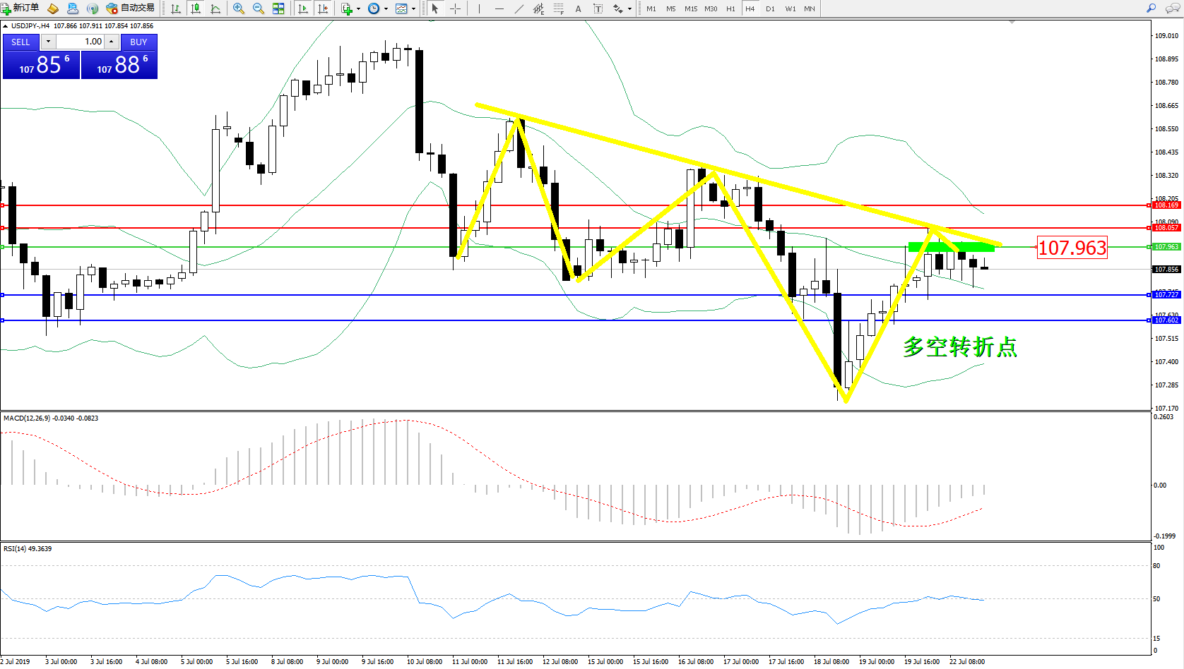 交易策略:107.963下方看跌,目标107.727107.602