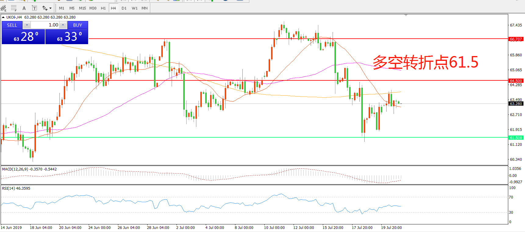 多空转折点:61.50