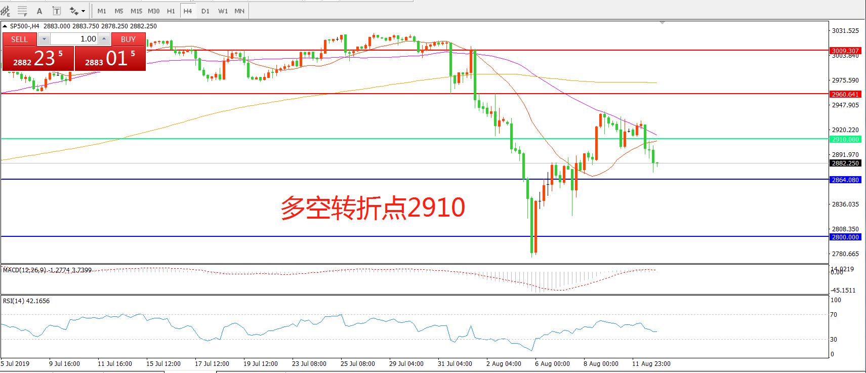 交易策略:在2910.00之下看跌,目标2864.00     2800.00