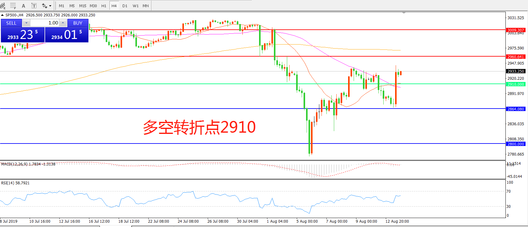 多空转折点:2910.00