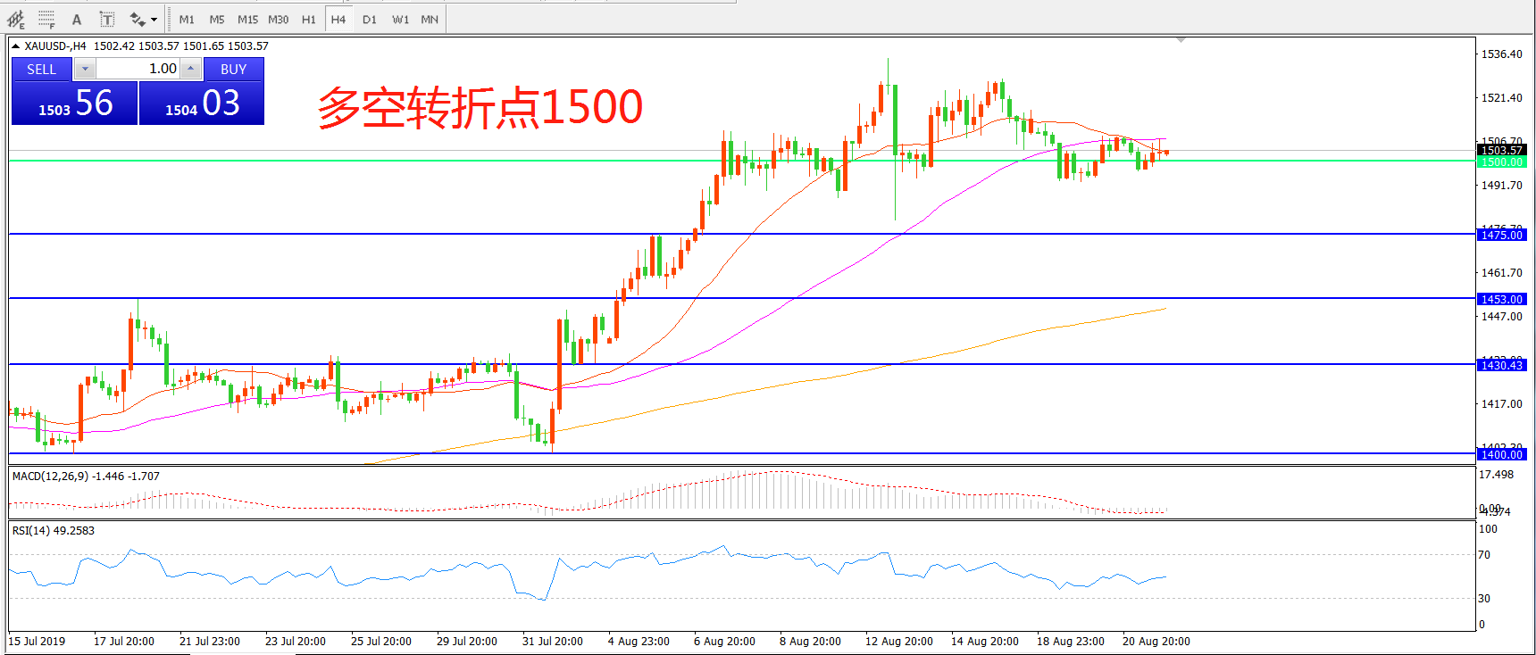 多空转折点:1500.00