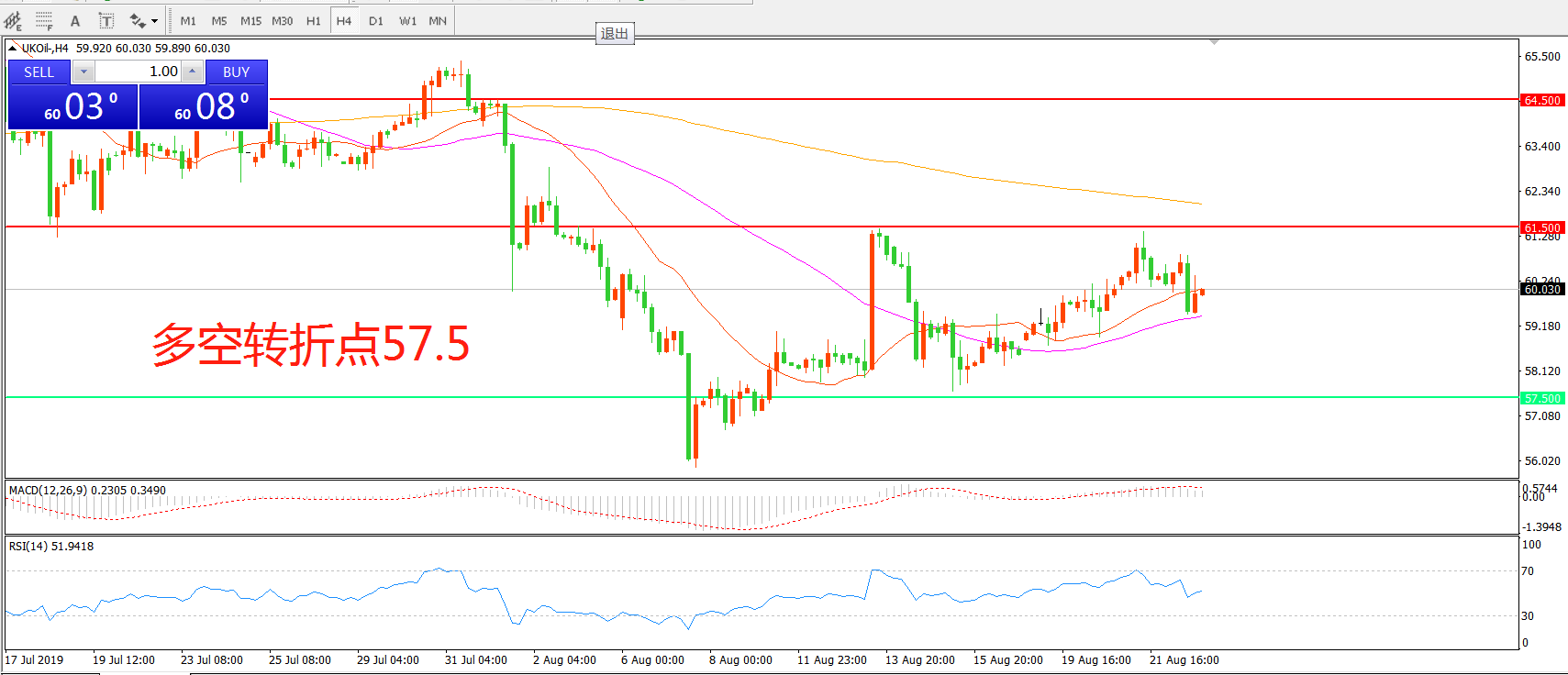 多空转折点:57.50