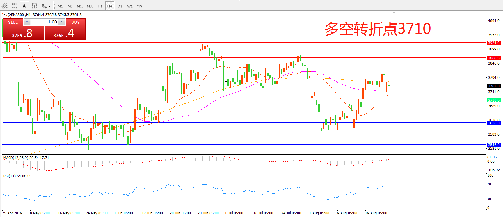 多空转折点:3710.00