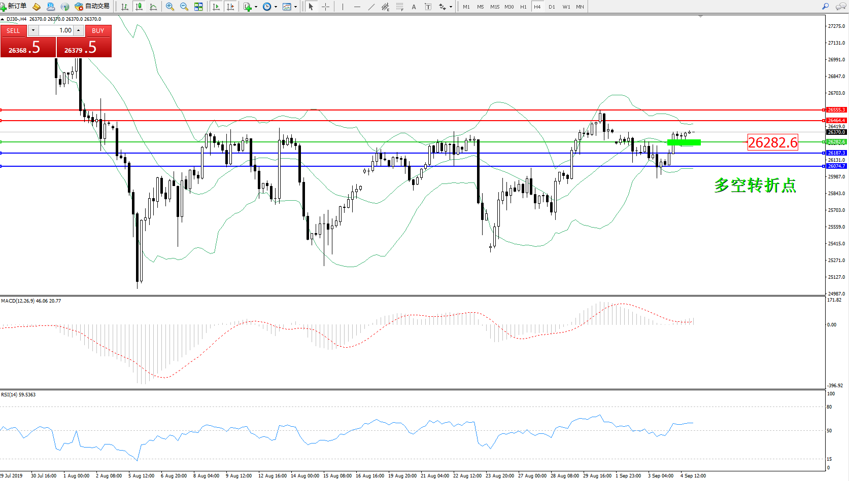 道琼斯指数9月4日(周三)收盘上涨237.50点,涨幅0.91%,报26355.47点。美国10年期国债收益率接近三年低点之际,焦点再次回到对经济的担忧。在美联储降息以及全球贸易争端缓和的预期下,美元或将走弱。法巴和瑞银下调美国10年期国债收益率年底预估值至1%;理由是全球经济增长和通胀疲软。10年期国债收益率2020年底将在1.25%,10年期收益率目前报1.46%,法国巴黎银行原先给10年期收益率的目标是1.75%,在下跌至1%之后,10年期收益率2020年全年将上升,年底将在1.5%。