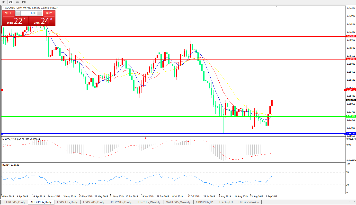 澳元兑美元AUDUSD 日线图: