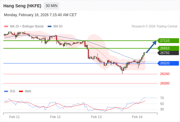 在 26520 之上,看涨,目标价位为 26910 ,然后为 27110 。