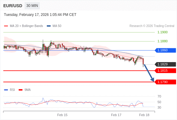 在 1.1860 之下,看跌,目标价位为 1.1815 ,然后为 1.1790 。