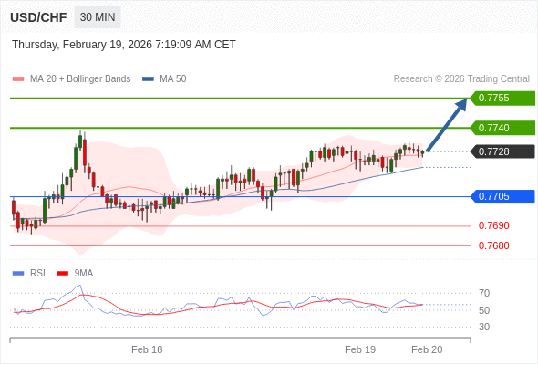 在 0.7705 之上,看涨,目标价位为 0.7740 ,然后为 0.7755 。