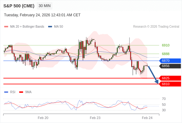 在 6870 之下,看跌,目标价位为 6825 ,然后为 6810 。