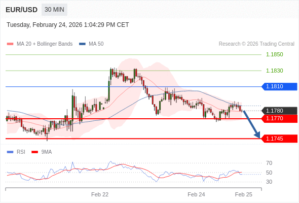 交易策略: 在 1.1810 之下,看跌,目标价位为 1.1770 ,然后为 1.1745 。