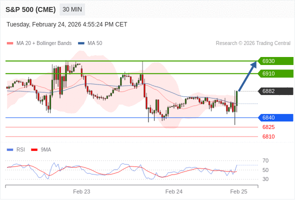 在 6840 之上,看涨,目标价位为 6910 ,然后为 6930 。