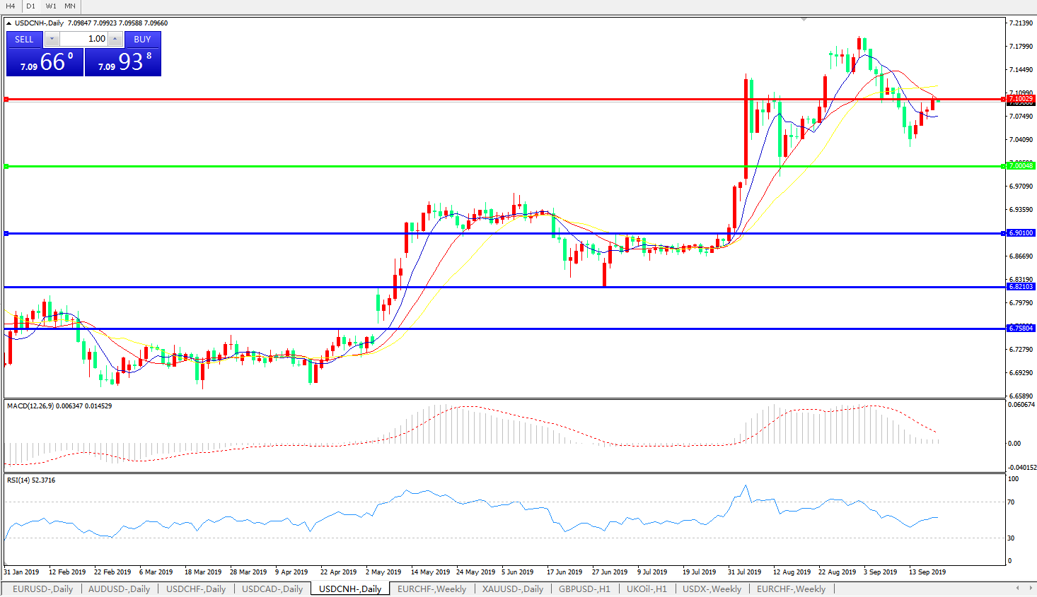 技术面简析:日图均线整体呈下行态势,汇价上行试探7.10关口,MACD逼近0轴且动能萎缩几不可见,RSI止跌小幅走高,预计短期汇价反弹或受阻,上方重点关注7.10-7.20-7.30区间的压制;后续重点关注中美贸易谈判进展。