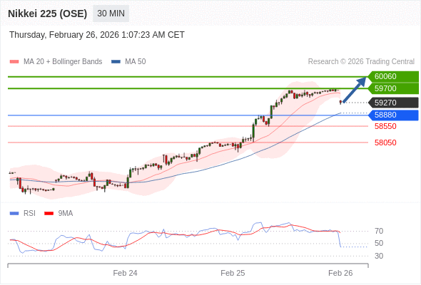 在 58880 之上,看涨,目标价位为 59700 ,然后为 60060 。