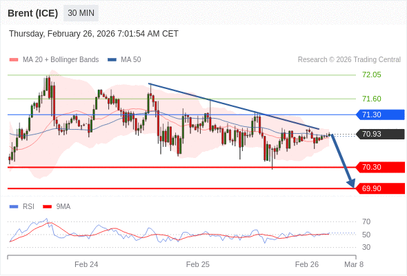 在 71.30 之下,看跌,目标价位为 70.30 ,然后为 69.90 。
