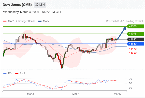 在 48680 之上,看涨,目标价位为 49075 ,然后为 49370 。