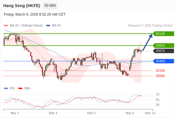 在 25400 之上,看涨,目标价位为 25820 ,然后为 26140 。