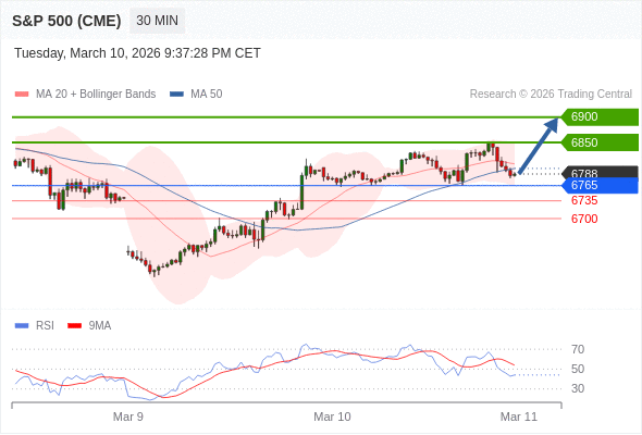 在 6765 之上,看涨,目标价位为 6850 ,然后为 6900 。