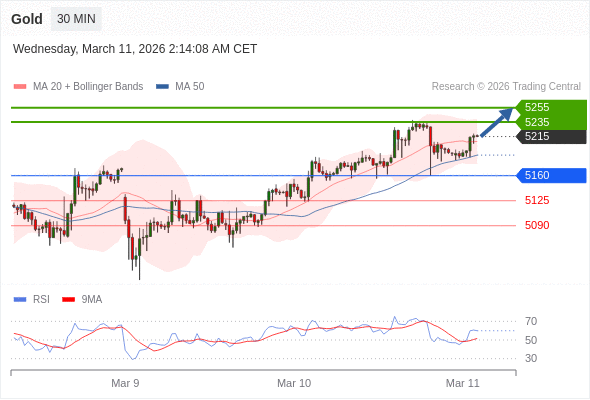 在 5160 之上,看涨,目标价位为 5235 ,然后为 5255 。