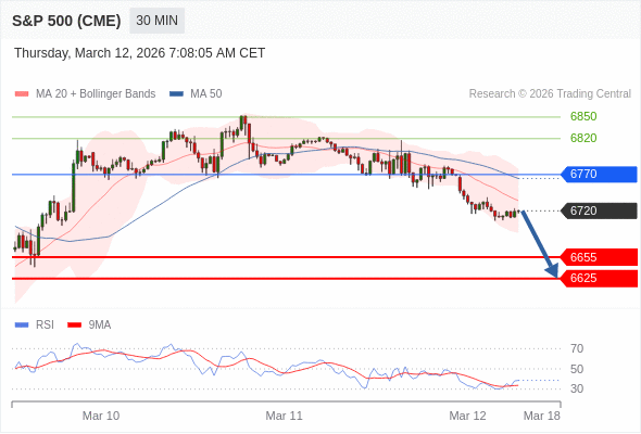 在 6770 之下,看跌,目标价位为 6655 ,然后为 6625 。