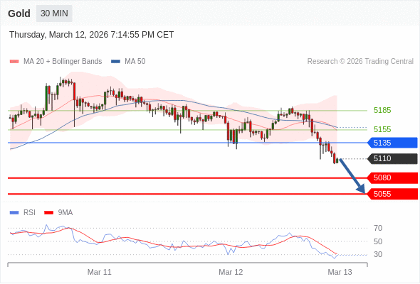 在 5135 之下,看跌,目标价位为 5080 ,然后为 5055 。