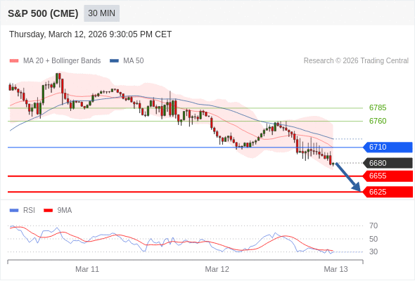 在 6710 之下,看跌,目标价位为 6655 ,然后为 6625 。