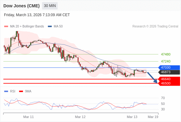在 47030 之下,看跌,目标价位为 46640 ,然后为 46500 。