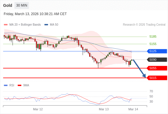 在 5125 之下,看跌,目标价位为 5055 ,然后为 5015 。