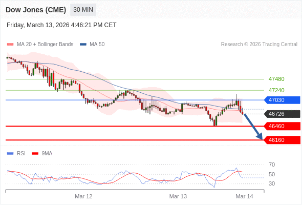 在 47030 之下,看跌,目标价位为 46460 ,然后为 46160 。