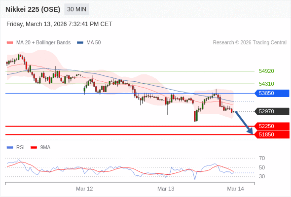 在 53850 之下,看跌,目标价位为 52250 ,然后为 51850 。