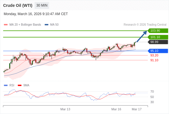 在 95.10 之上,看涨,目标价位为 101.10 ,然后为 103.90 。