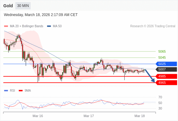 在 5025 之下,看跌,目标价位为 4985 ,然后为 4965 。