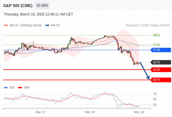 在 6736 之下,看跌,目标价位为 6630 ,然后为 6575 。