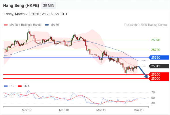 香港恒生指数期货 当日内: 短期关键阻力位在25530。