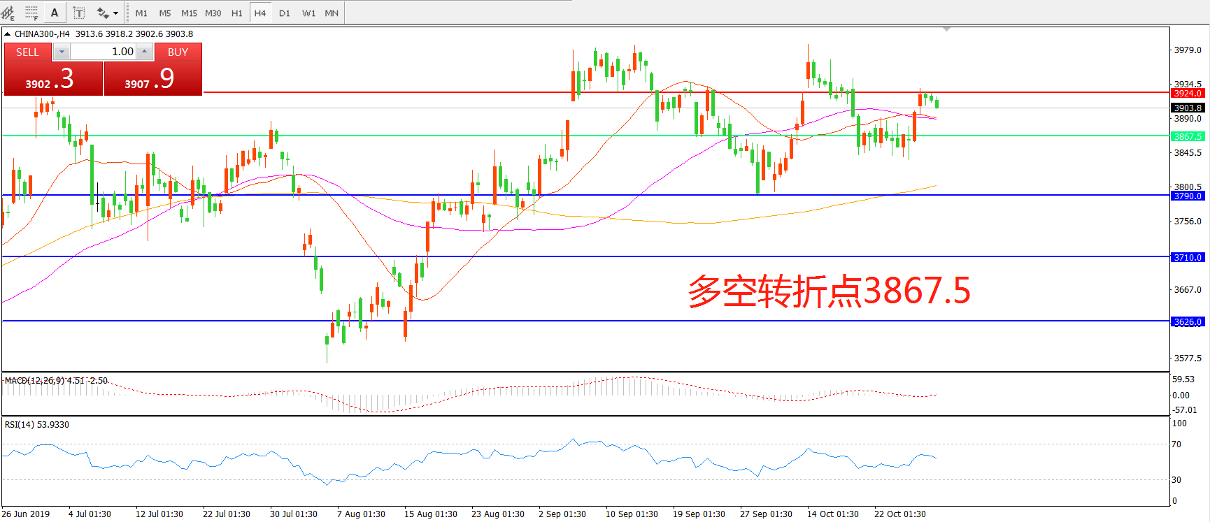 沪深300指数CHINA300 4小时图