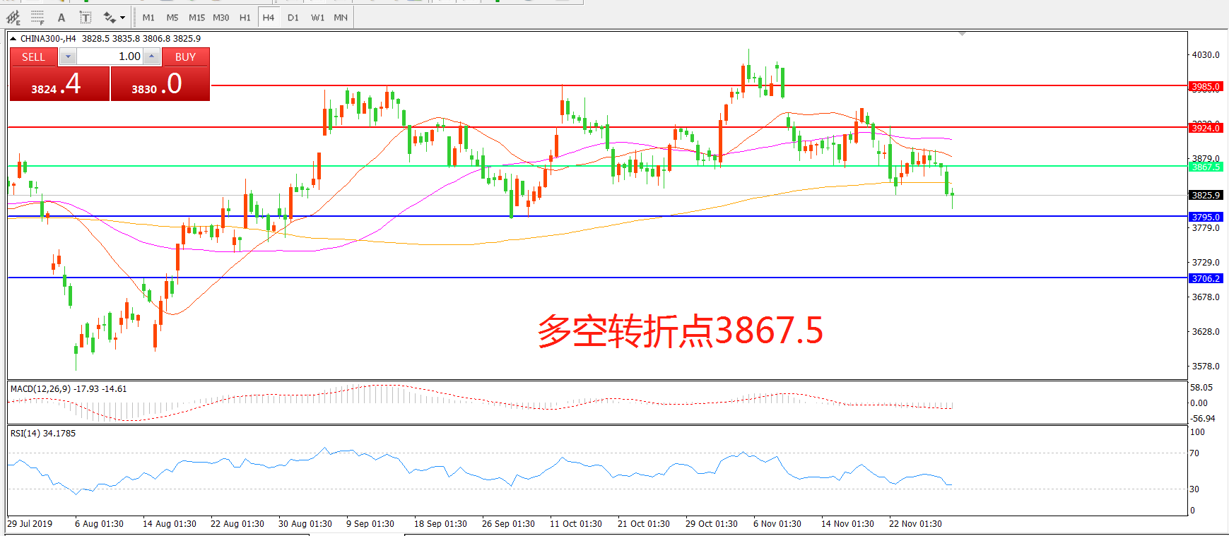 交易策略:在3867.50之下看跌,目标3795.00     3706.00