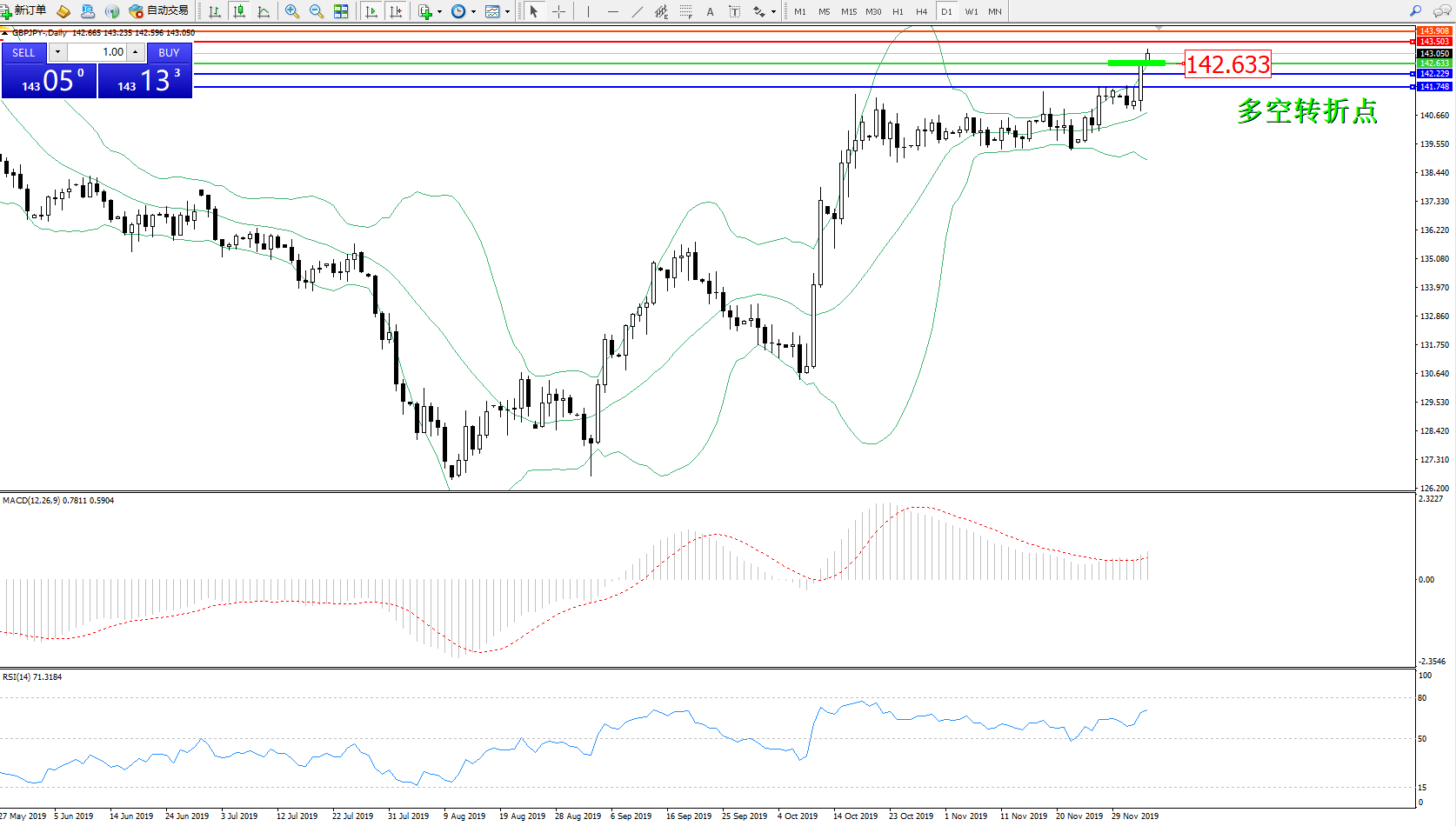交易策略:142.633上方看涨,目标143.503、143.908