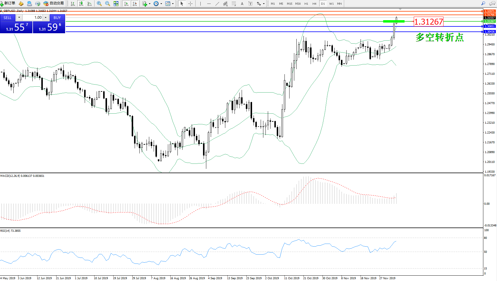 交易策略:1.31267上方看涨,目标1.317661.32071